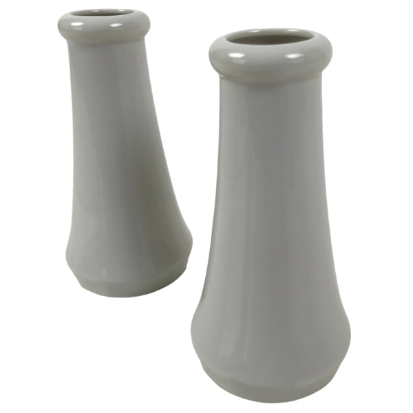 This is a pair of porcelain flower vases, hanatate, for Buddhist altars. These particular vases have a simple, smooth, tapered shape. It features a solid white glaze with no other decoration.