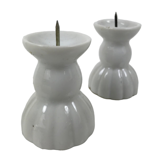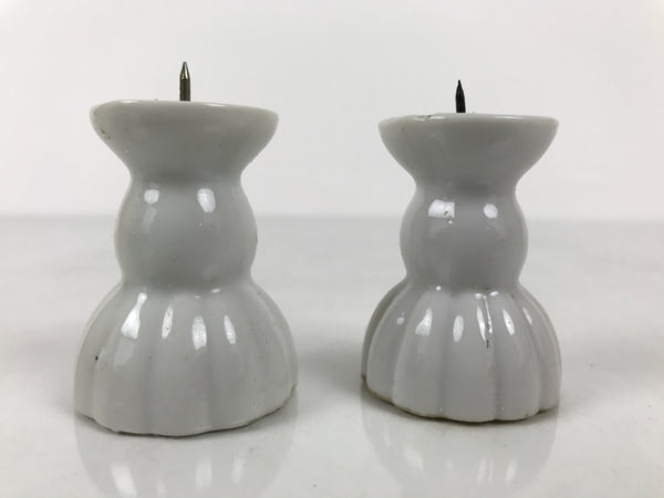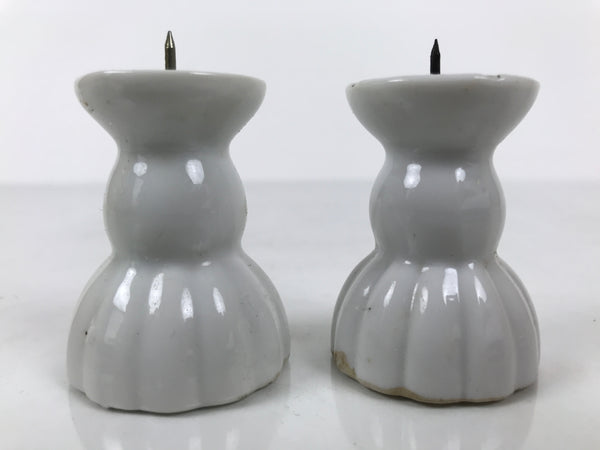 Japanese Buddhist Altar Porcelain Candle Stand 2pcs Shokudai Simple White BA827