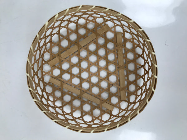 Expertly woven with fine strips of bamboo in the hexagonal mutsume-ami style (also called Shaker), this spacious, round basket is the perfect addition to any home or office decor.