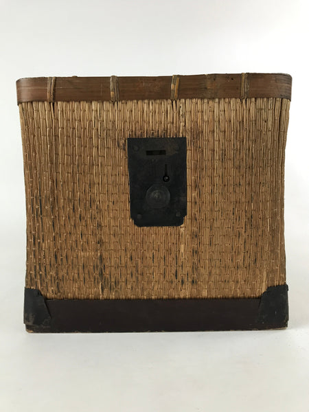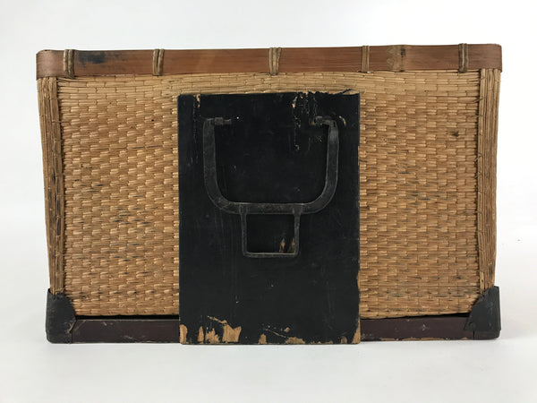 Japanese Bamboo Woven Storage Basket Vtg Traveler Chest Kago Iron Handles B222