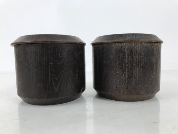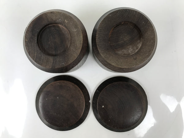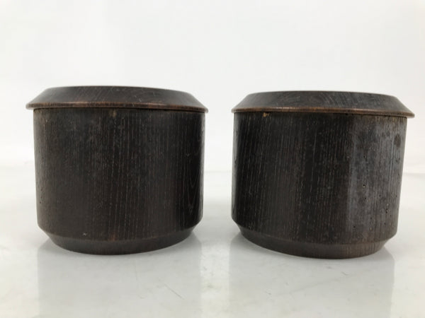 This is a vintage goishi, or go stone, set used to play the popular strategy board game Igo, or Go. This beautiful set of game pieces made from black stone and white shell is contained in lidded dark brown wooden bowls for easy, decorative storage.