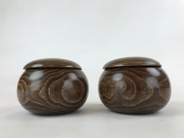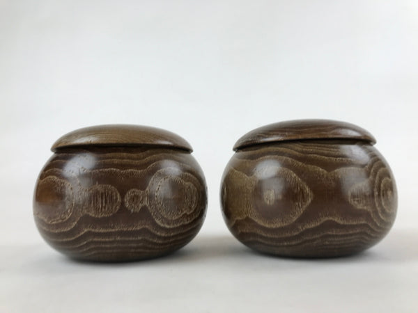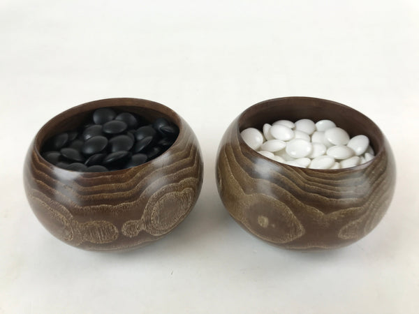 Japanese Go Stone Goishi Game Pieces Vtg Igo Brown Wooden Bowls Glass GO91