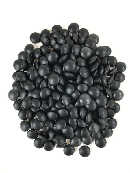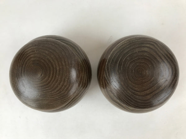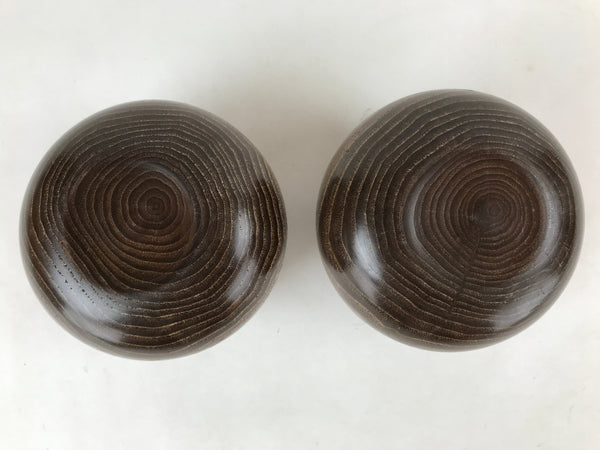 This is a vintage goishi, or go stone, set used to play the popular strategy board game Igo, or Go. This beautiful set of game pieces made from black and white glass is contained in lidded medium brown wooden bowls for easy, decorative storage.