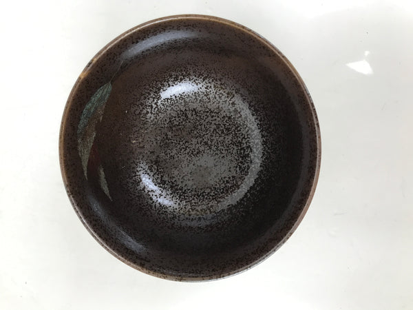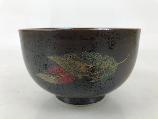 Japanese Ceramic Rice Bowl Donburi Dish Vtg Tenmoku Spot Pattern Leaf Brown Y429