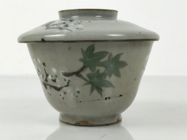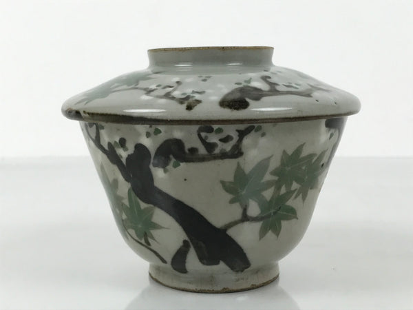 This is a vintage Japanese ceramic bowl with a lid, known as mushiwan. Mushiwan is used when cooking chawanmushi, steamed egg custard. It can also be used as a presentation dish for smaller meal elements during kaiseki dining, or can be used as a lidded teacup.