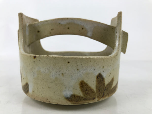 This vintage Japanese ceramic small bowl, also called kashiki or kashibachi, is beige with a foggy white glaze on top. It features brown leaves and a brown mesh, and blue chidori birds, or plovers, a popular traditional pattern. It is a basket-like shape, with a handle at the top. It is ideal to serve snacks or small food when hosting guests or parties.
