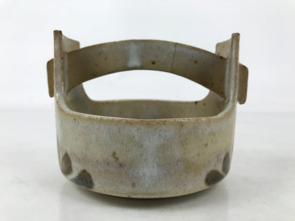 This vintage Japanese ceramic small bowl, also called kashiki or kashibachi, is gray with a foggy white glaze on top. It features brown leaves and a brown mesh, and blue chidori birds, or plovers, a popular traditional pattern. It is a basket-like shape, with a handle at the top. It is ideal to serve snacks or small food when hosting guests or parties.
