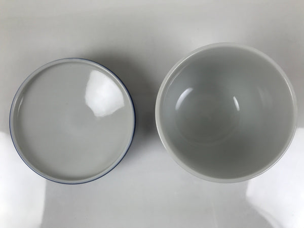 Japanese Porcelain Lidded Bowl Mushiwan Vtg White Blue Horse Boat Sometsuke Y455