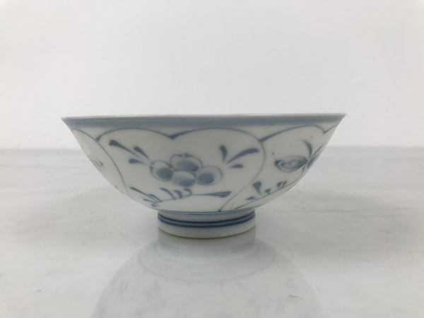 Japanese Porcelain Mino Ware Rice Bowl Chawan Vtg White Blue Plant Vine Tea Y495