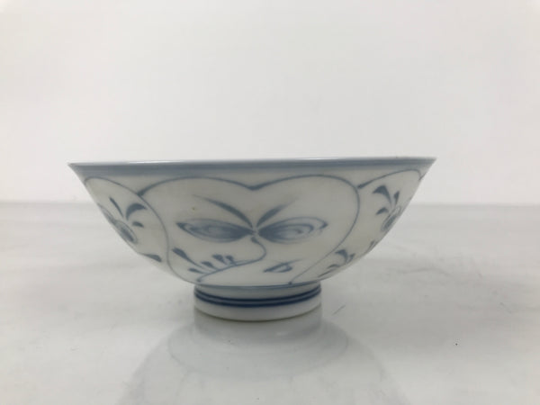 Japanese Porcelain Mino Ware Rice Bowl Chawan Vtg White Blue Plant Vine Tea Y496