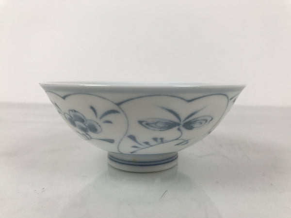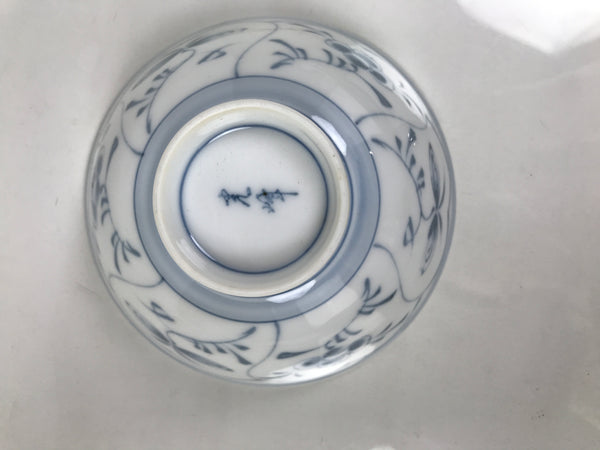 Japanese Porcelain Mino Ware Rice Bowl Chawan Vtg White Blue Plant Vine Tea Y498