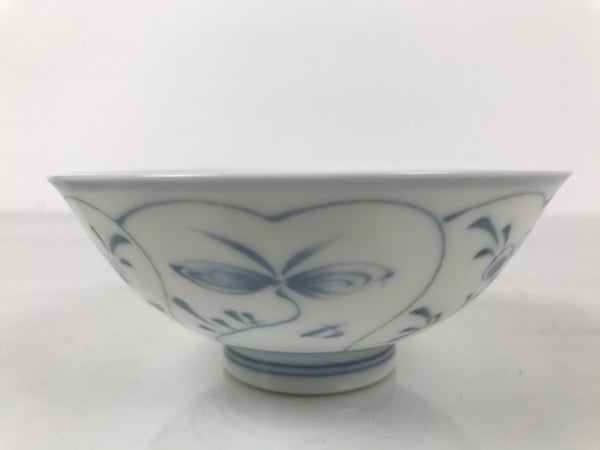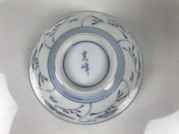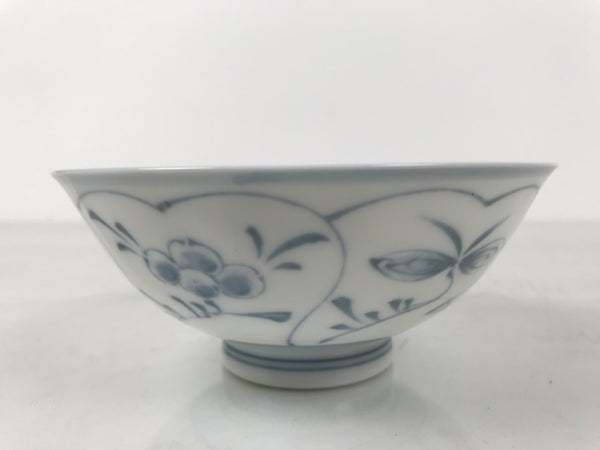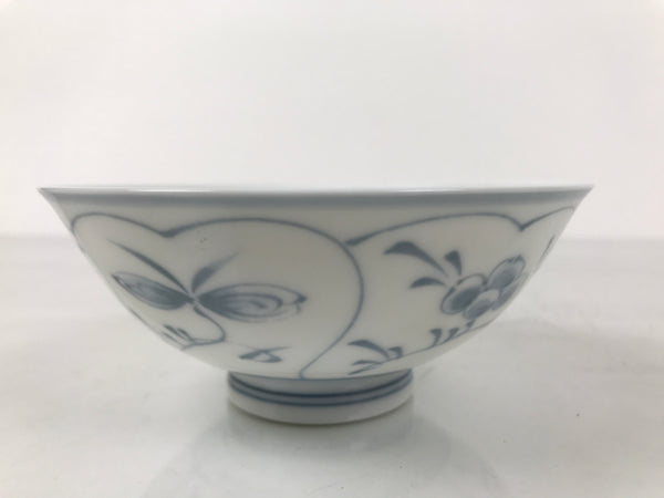 Japanese Porcelain Mino Ware Rice Bowl Chawan Vtg White Blue Plant Vine Tea Y502