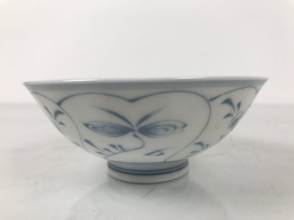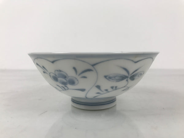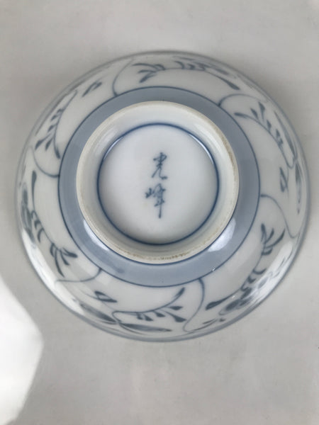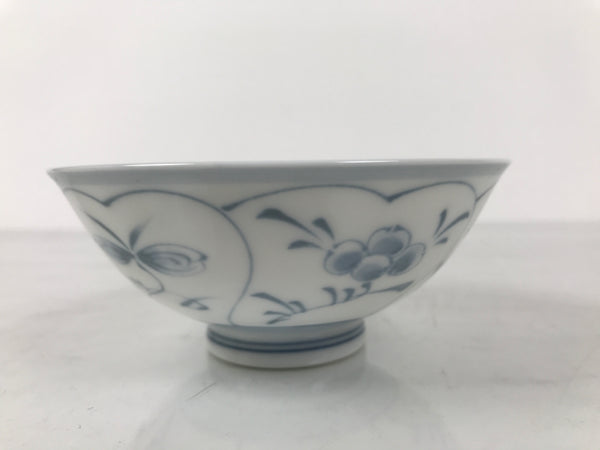 Japanese Porcelain Mino Ware Rice Bowl Chawan Vtg White Blue Plant Vine Tea Y503