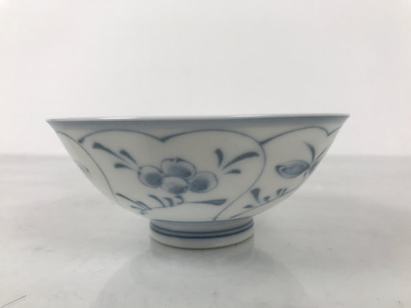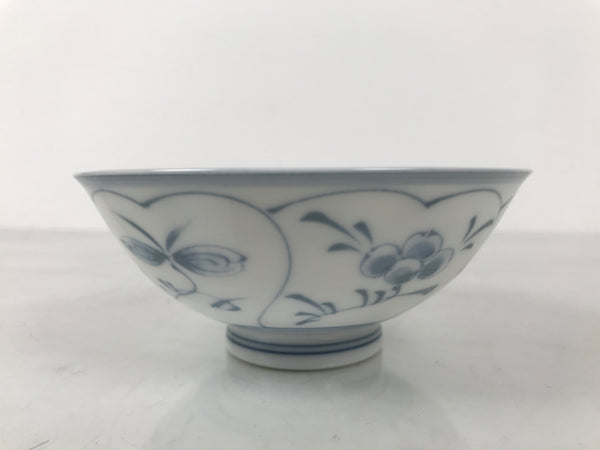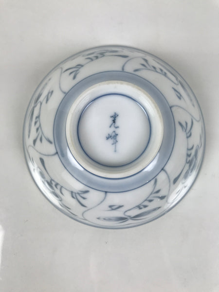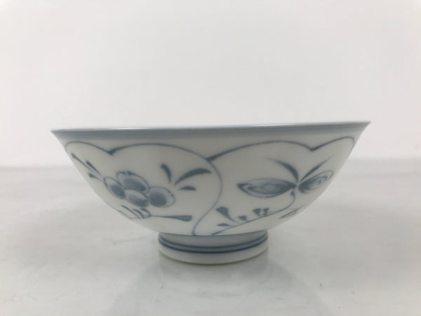 Japanese Porcelain Mino Ware Rice Bowl Chawan Vtg White Blue Plant Vine Tea Y504