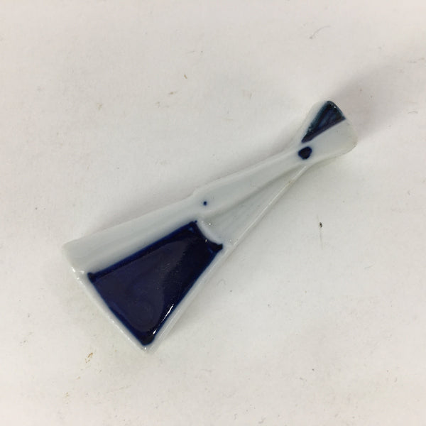 Japanese Porcelain Chopstick Rest Holder Vtg Blue Folding Fan Shape Hashioki CR2