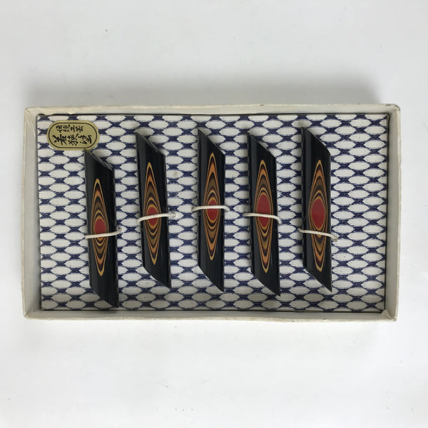 Japanese Wakasa Nuri Lacquered Wooden Chopstick Rest 5 Pcs Vtg Black Red LWB110