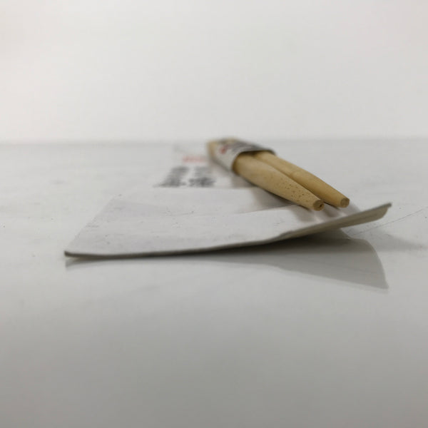 This is a pair of Japanese vintage bamboo chopsticks. The front of the mount paper indicates good fortune and protection from evil, and these longevity chopsticks will bring good luck, so let's eat rice and get healthier with family. There are explanations of bad manners for using chopsticks on the backside of the mount. On the wrapping paper, it says longevity chopsticks. The inscription on the chopstick means grandfather. The pair of chopsticks is unused.