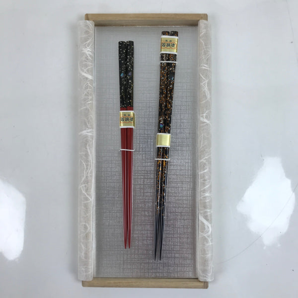 Japanese Lacquered Wooden Chopstick Pair Set Vtg Wakasa Raden Red Black L299