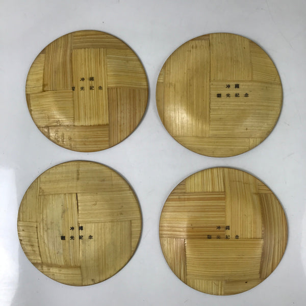 Japanese Bamboo Okinawa Drink Saucer Chataku Coaster Souvenir 4pc Dancer L392