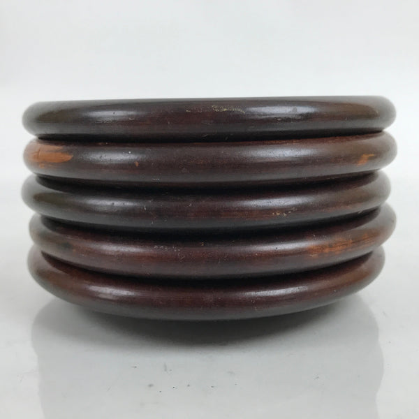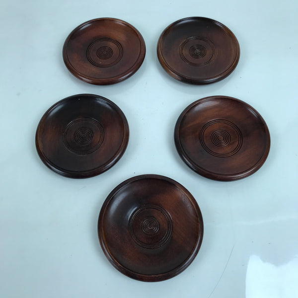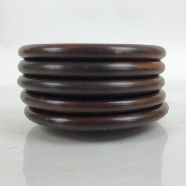 Japanese Brushed Lacquer Wooden Drink Saucer Vtg Chataku Coaster 5pc Brown L332