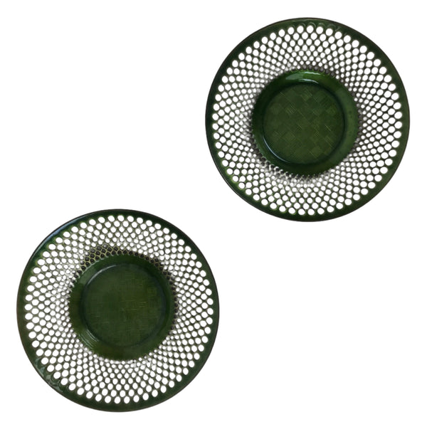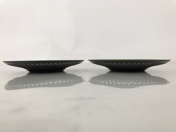 Japanese Metal Drink Saucer Vtg Chataku Coaster 2pcs Green Punched Holes L534