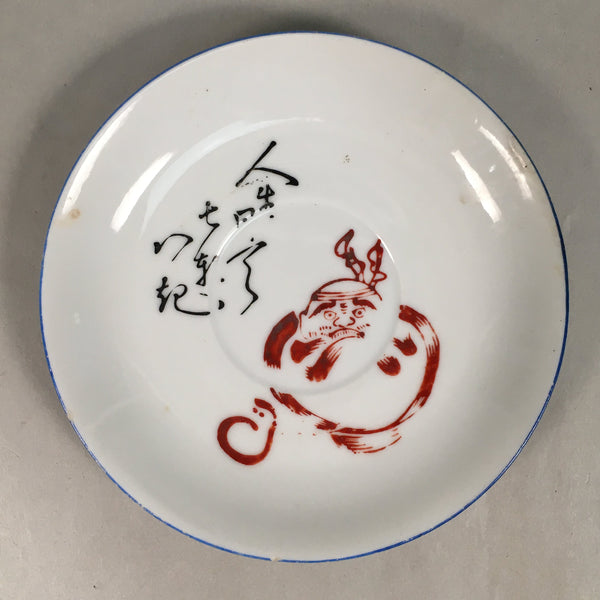 Japanese Porcelain Drink Saucer Vtg Chataku Coaster Daruma Kanji PP371