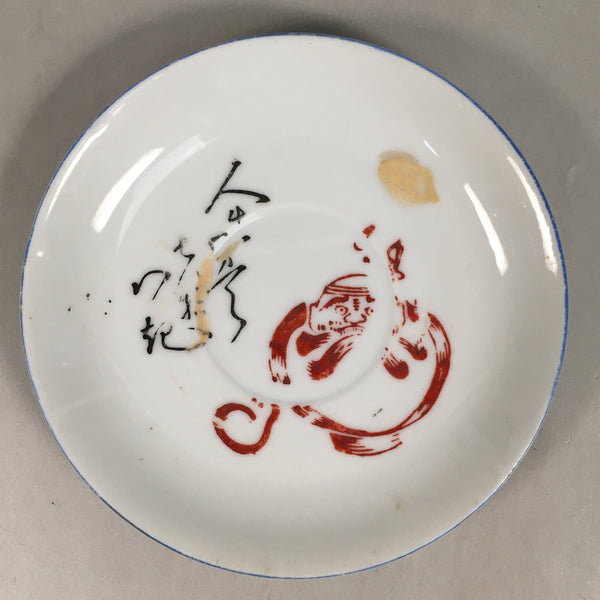 Japanese Porcelain Drink Saucer Vtg Chataku Coaster Daruma Kanji PP373