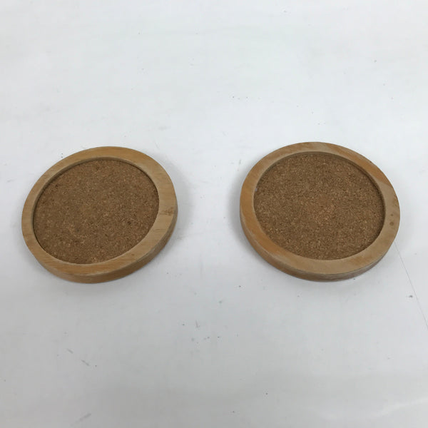 Japanese Handmade Natural Wood Drink Saucer Vtg Chataku Coaster 2pc Cork L342