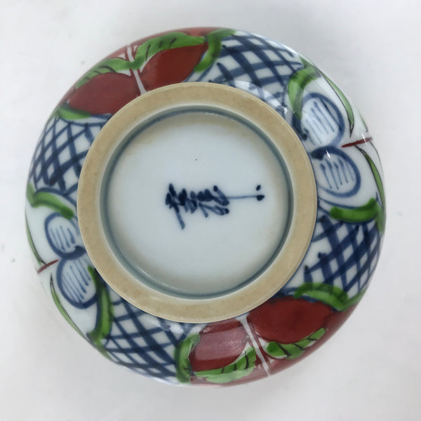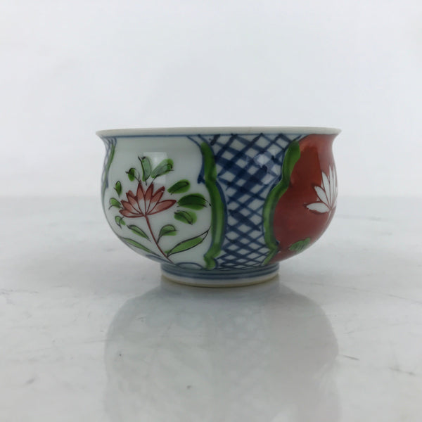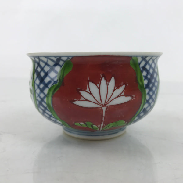 Japanese Arita Porcelain Teacup Vtg Red Blue Lotus Flower Sencha Yunomi TC515