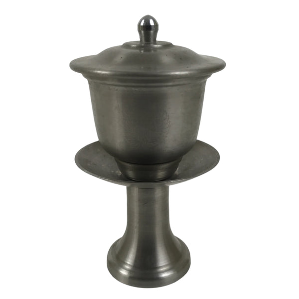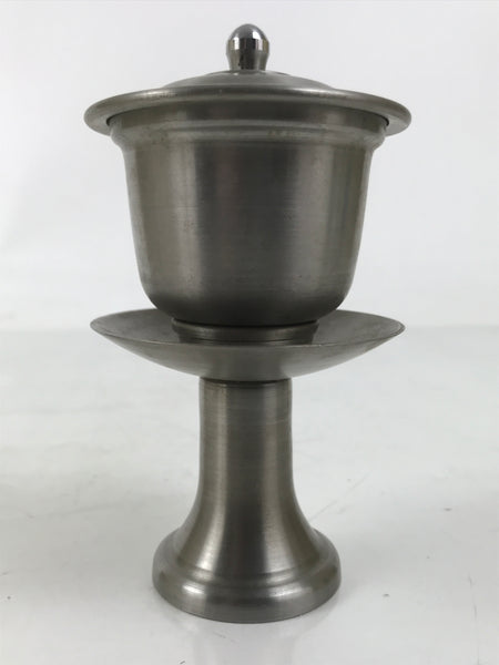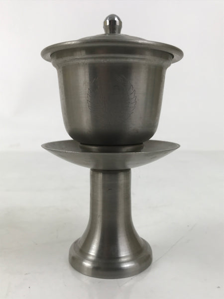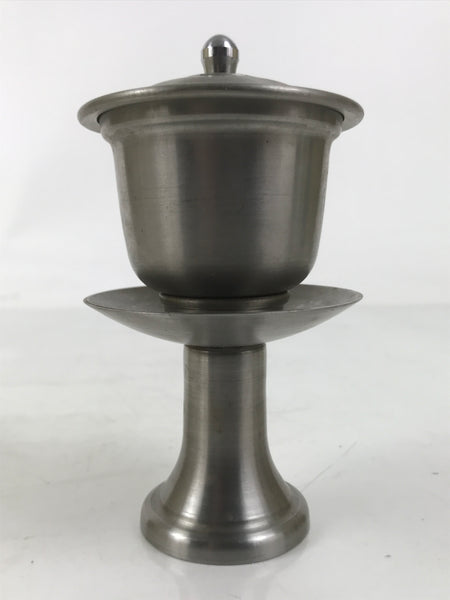 Japanese Buddhist Altar Metal Water Offering Cup Tea Chaki Silver Stand BA639