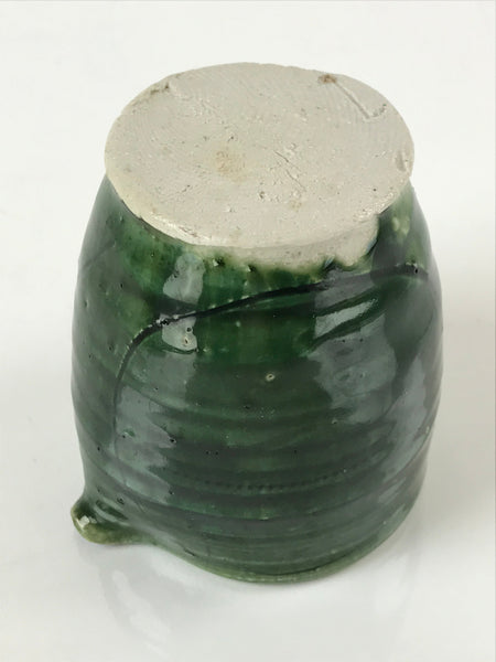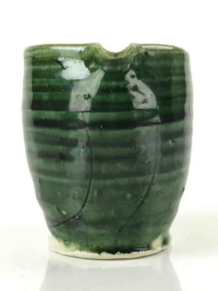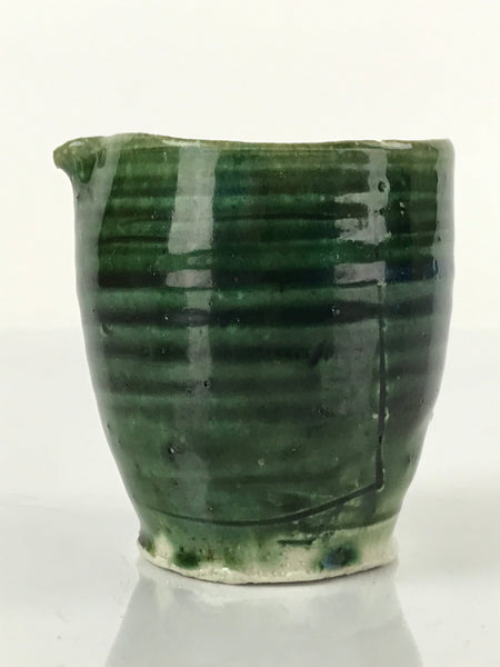 Japanese Ceramic Sake Pourer Tokkuri Cup Vtg Katakuchi Dark Green Glaze PY642