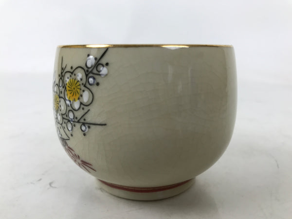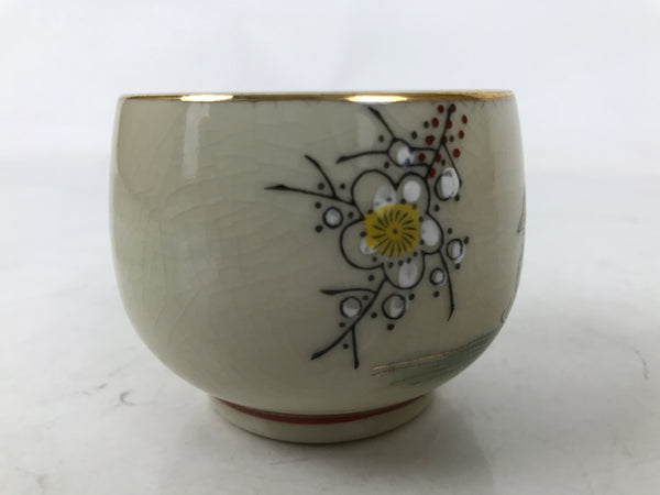 Japanese Kutani Porcelain Teacup Vtg Ducks Plum Blossom Beige Red Yunomi TC596