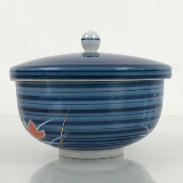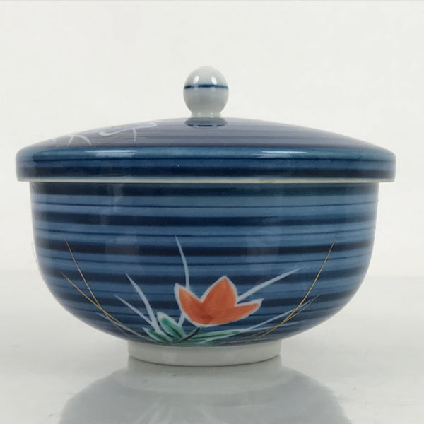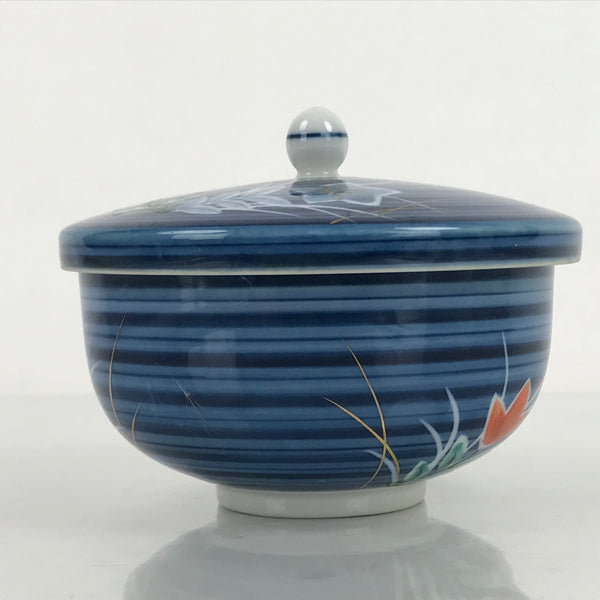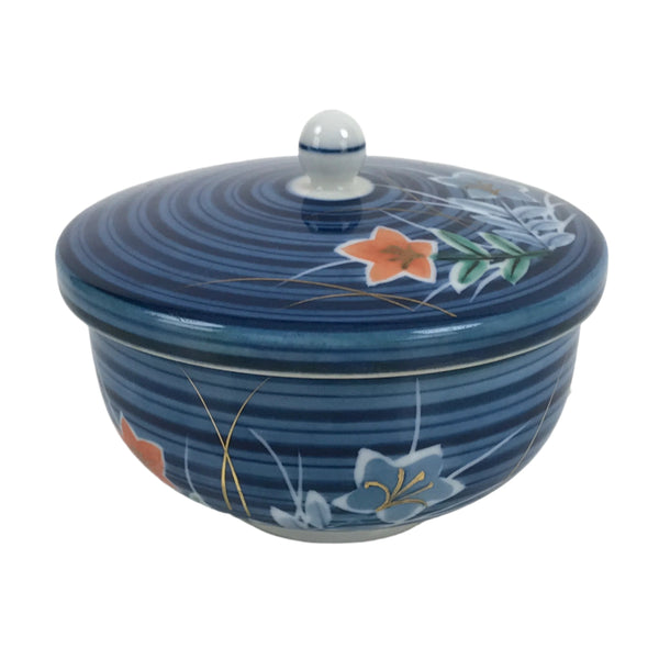 Japanese Porcelain Lidded Teacup Vtg Kikyo Balloon Flower Yunomi Blue TC503