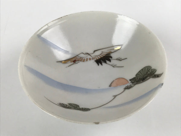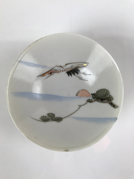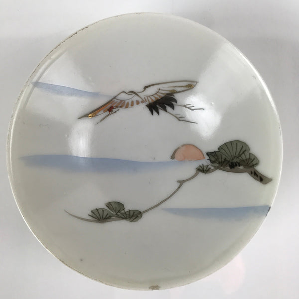 Japanese Porcelain Sake Cup Vtg Sakazuki Guinomi Crane Sunrise Pine White G198