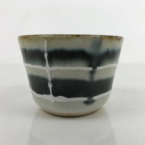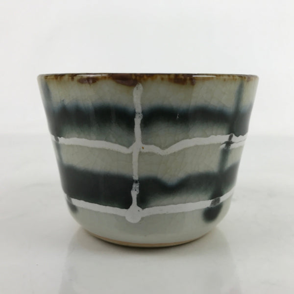 Japanese Porcelain Teacup Vtg Gray Black White Lines Ceramic Sencha Yunomi TC456