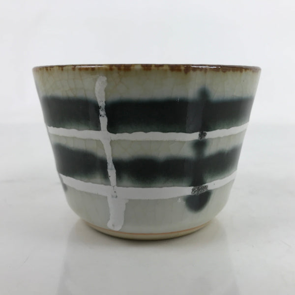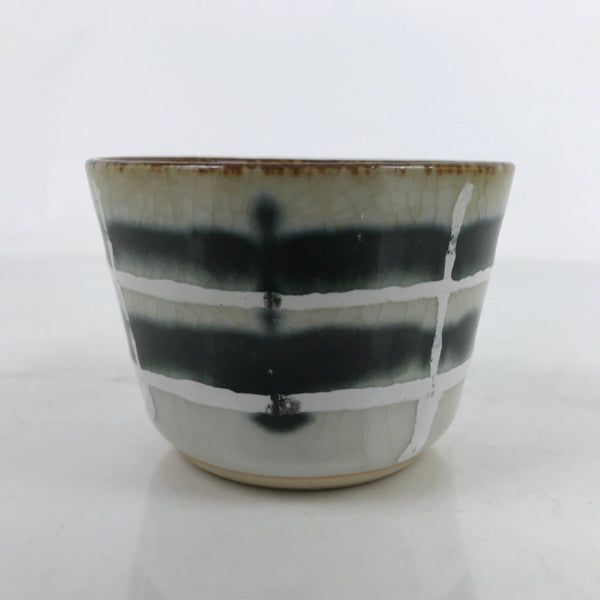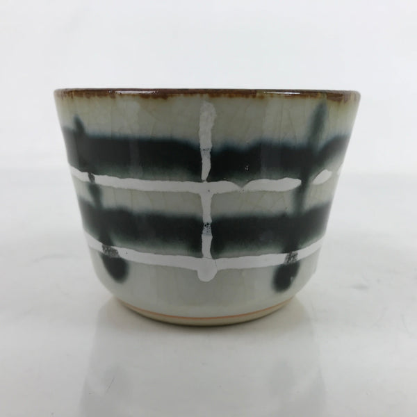 Japanese Porcelain Teacup Vtg Gray Black White Lines Ceramic Sencha Yunomi TC460