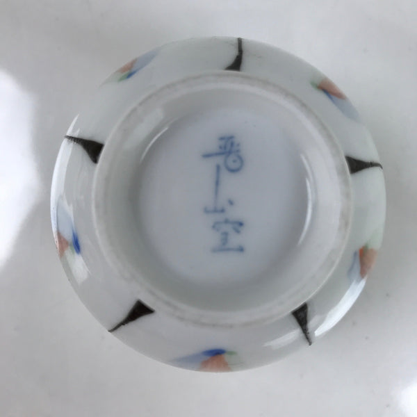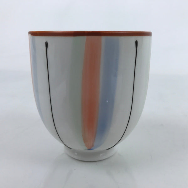 Japanese Porcelain Teacup Vtg Red Green Blue Black Stripes Sencha Yunomi TC461