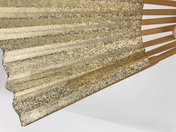 Japanese Washi Paper Folding Fan Sensu Vtg Gold Freckles Calligraphy Black 4D998
