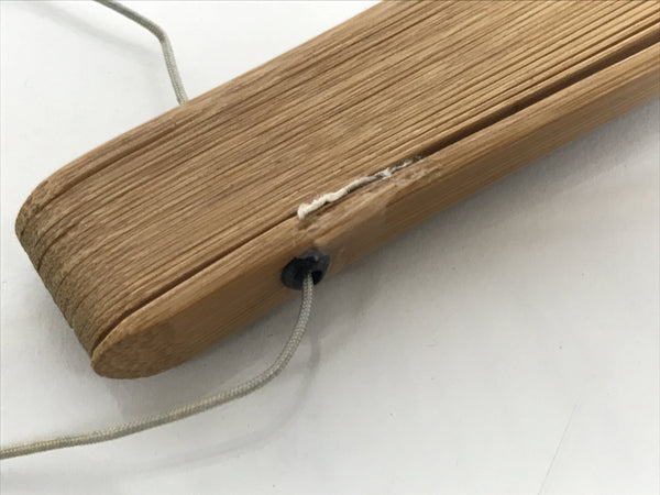 • Good condition considering age. Tape applied to a tear on paper on the left side. Tape has yellowed. Glue (?) at the bottom of the bamboo frame. Discoloration on string. Wear and tear due to age. Please see the photos.