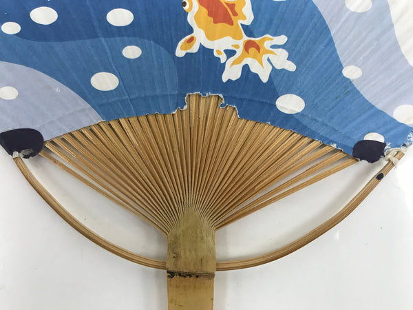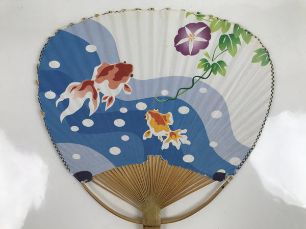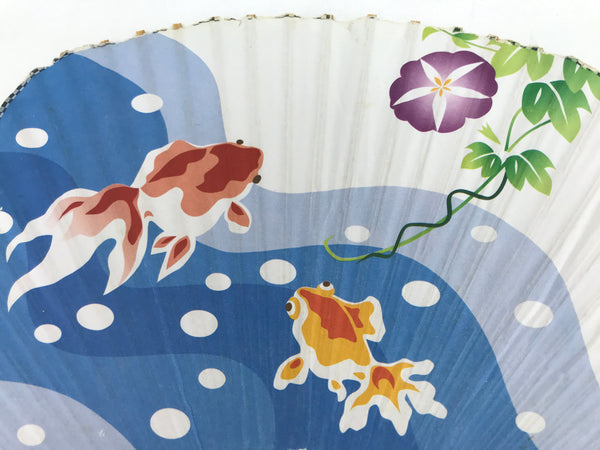 Japanese Paper Fan Fukakusa Uchiwa Bamboo Vtg Morning Glory Goldfish Summer U177
