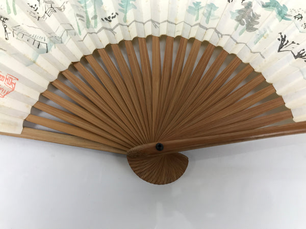 Japanese Paper Folding Fan Sensu Vtg Bamboo Frame Village Calligraphy 4D937