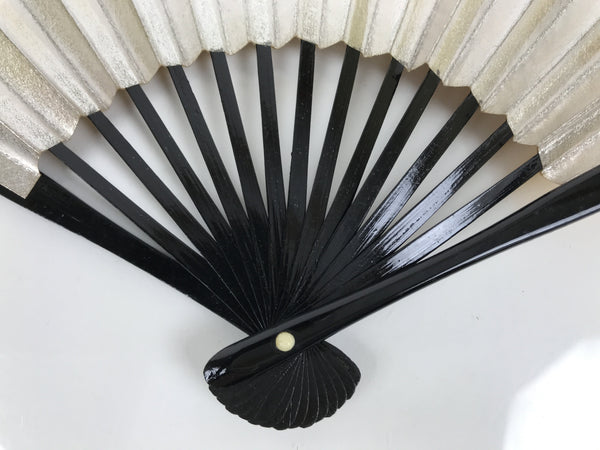 Japanese Paper Folding Fan Sensu Vtg Lacquered Bamboo Gold Silver Formal 5D6