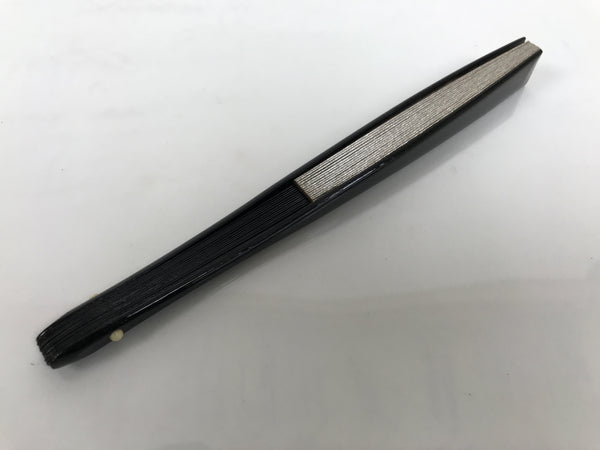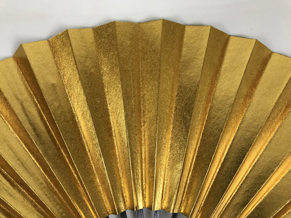 This is a traditional Japanese folding fan called sensu. You can use this when it's hot or as decoration. This small decorative fan is a simple metallic gold foil paper on one side with no designs. The back is silver. The frame is natural bamboo and coated with shiny black lacquer. This is made for formal or ceremonial occasions, such as weddings, and is carried by women. The fan is small and also an excellent addition to tea ceremony sets or for small displays.