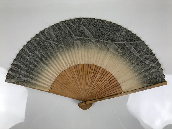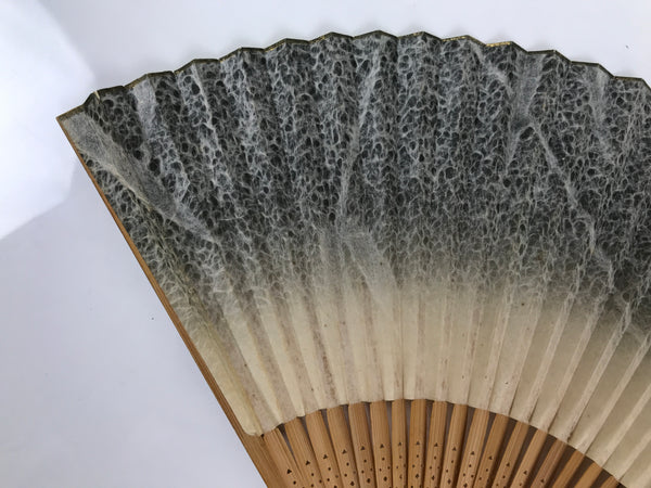 Japanese Washi Paper Folding Fan Vtg Sensu Bamboo Frame Black Beige Leaf 4D983