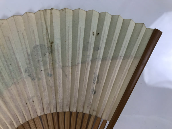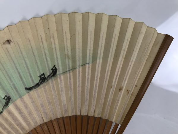 Japanese Paper Folding Fan Sensu Vtg Bamboo Frame Riverside Boats Green 4D975