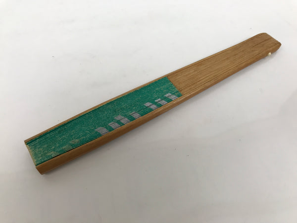 Japanese Paper Folding Fan Sensu Vtg Bamboo Frame Teal Silver Gold Lines 4D977