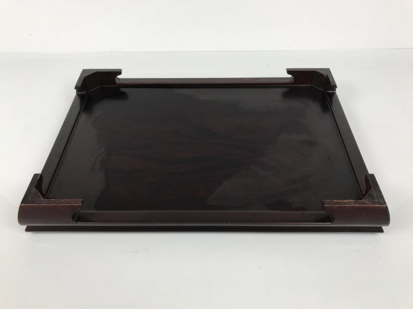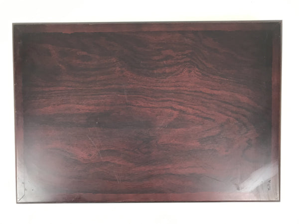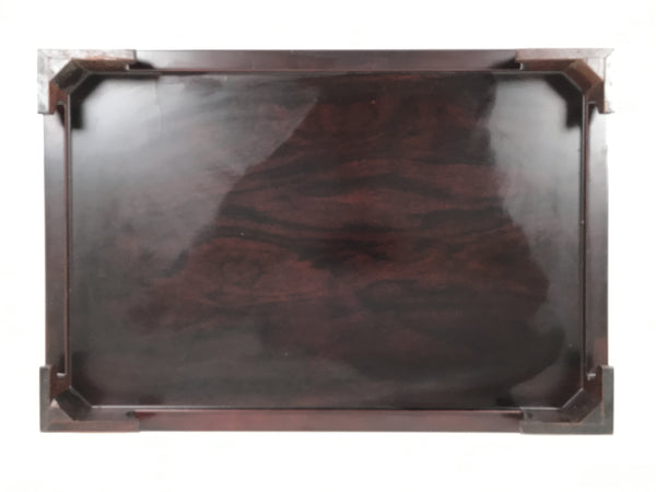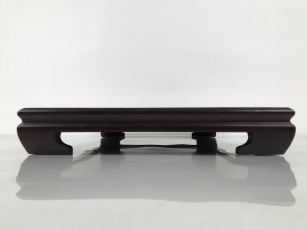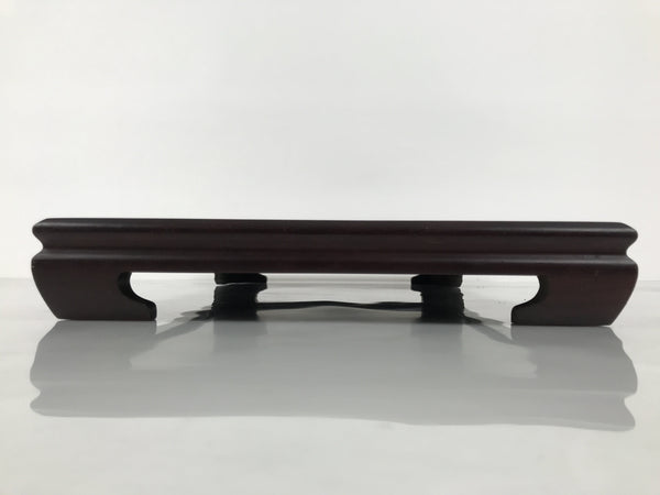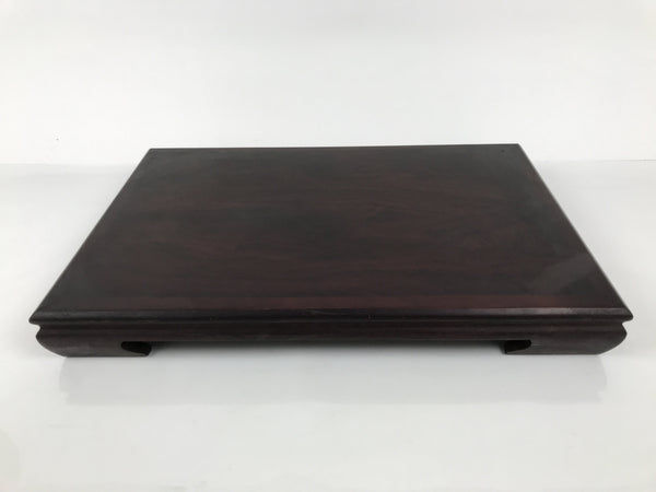 Used for the display of flower vases, ikebana arrangements, bonsai, and more, this large, rectangle-shaped kadai stands on four sturdy and short legs. The color is a dark brown and coated with a clear lacquer finish that showcases the stand's gorgeous natural wood grain.