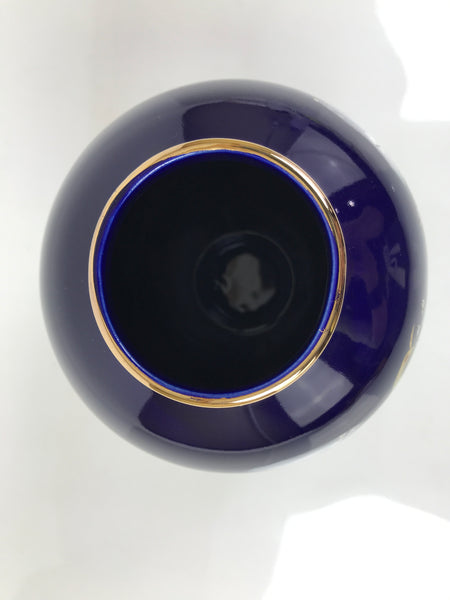 Japanese Porcelain Flower Vase Vtg Kabin Blue Peacock Bird Gold Floral FK218