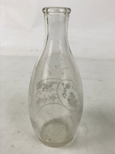 Japanese Itou Tsuru Brand Glass Sake Bottle Tokkuri Vtg Crane Pine Tree TS821