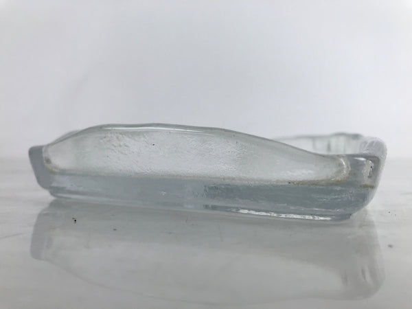 Japanese Sasaki Crystal Glass Sashimi Plate Kozara Vtg Fan Shape Plant Clear Y87